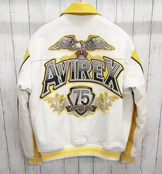 Mens Avirex Aviator King 75 Bomber Jacket 1975 Fashion Yellow Leather Jacket
