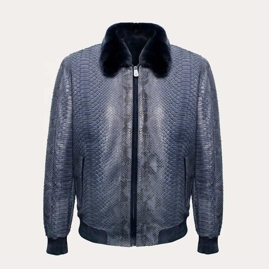 NEW Men’s Embossed Luxury Blue Python Snakeskin Bomber Zip Up Leather Jacket