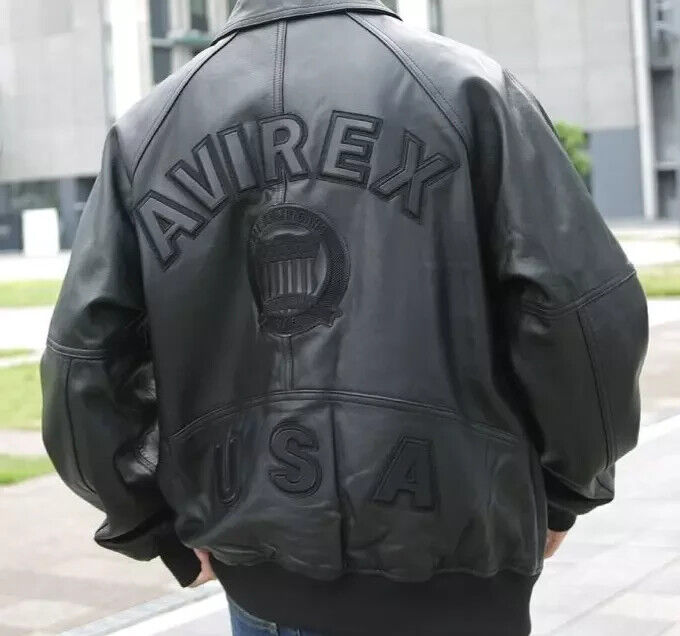 NEW Avirex Men’s Black American bomber Flight Genuine Cowhide Leather Jacket NWT