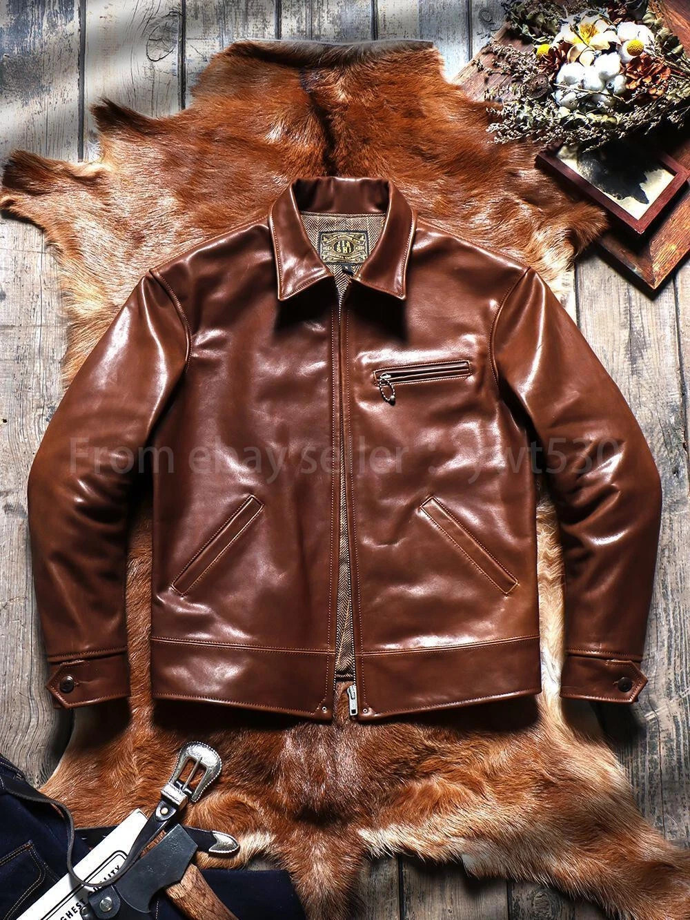 • Men’s Biker Jacket Vegetable Tanned Batik Horsehide Geniune Leather Retro Coat