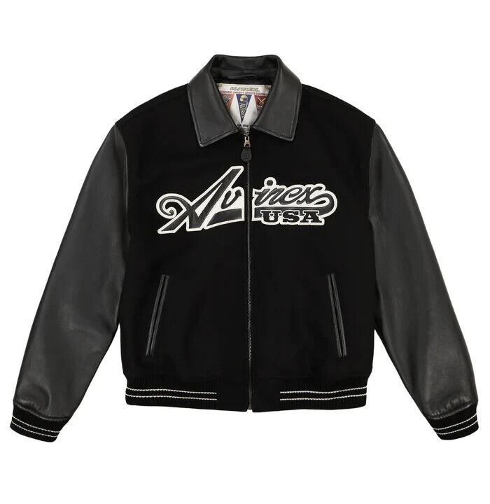 • NEW Men’s Avirex Script Black Wool Leather Jacket NWT
