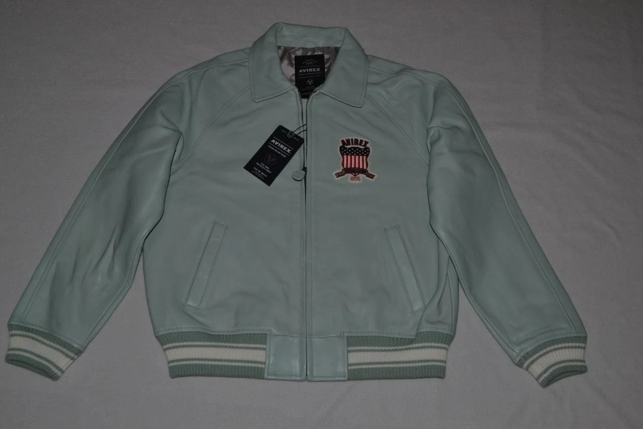 • NEW Men’s Avirex Icon Leather A1 Bomber Jacket Seafoam NWT