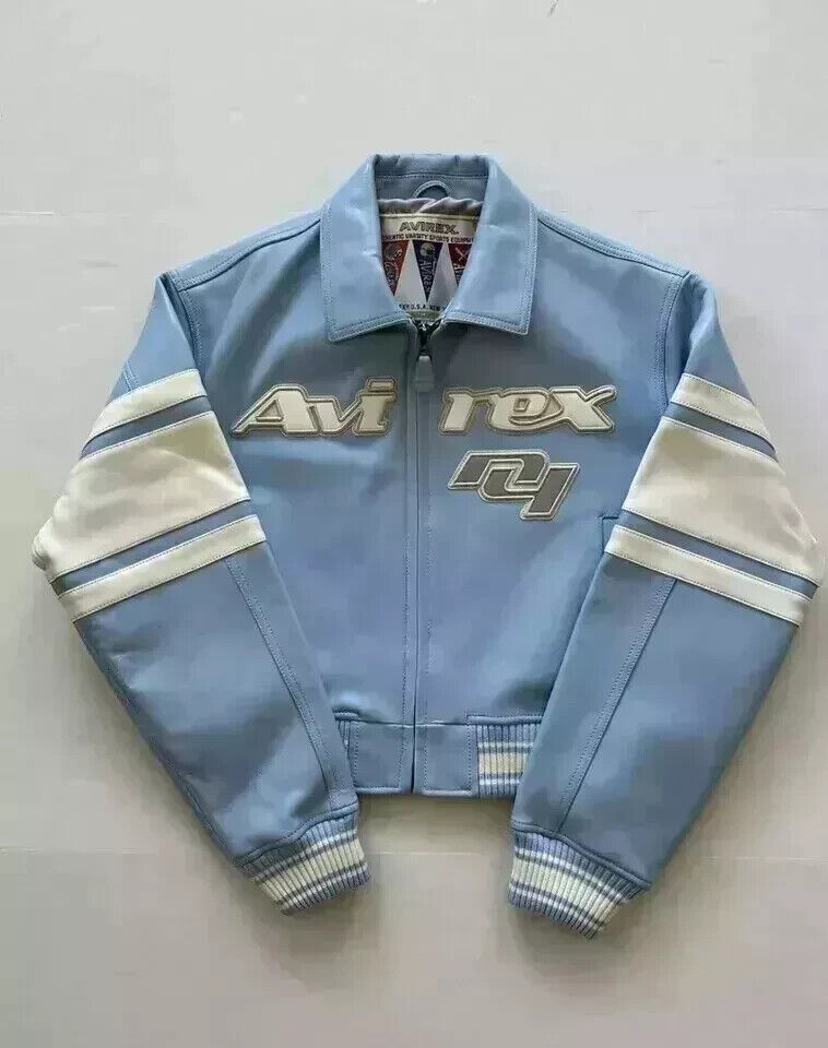 • NEW Women’s Avirex Cropped Icon Blue Leather Jacket