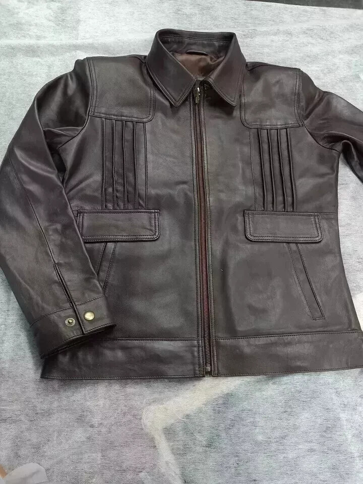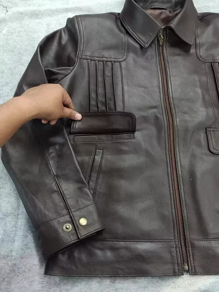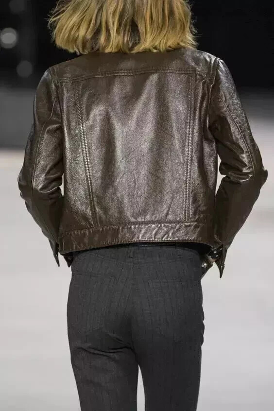 Celine Inspired Men Fashion Show Brown Leather Jacket Hedi Slimane Runway Paris