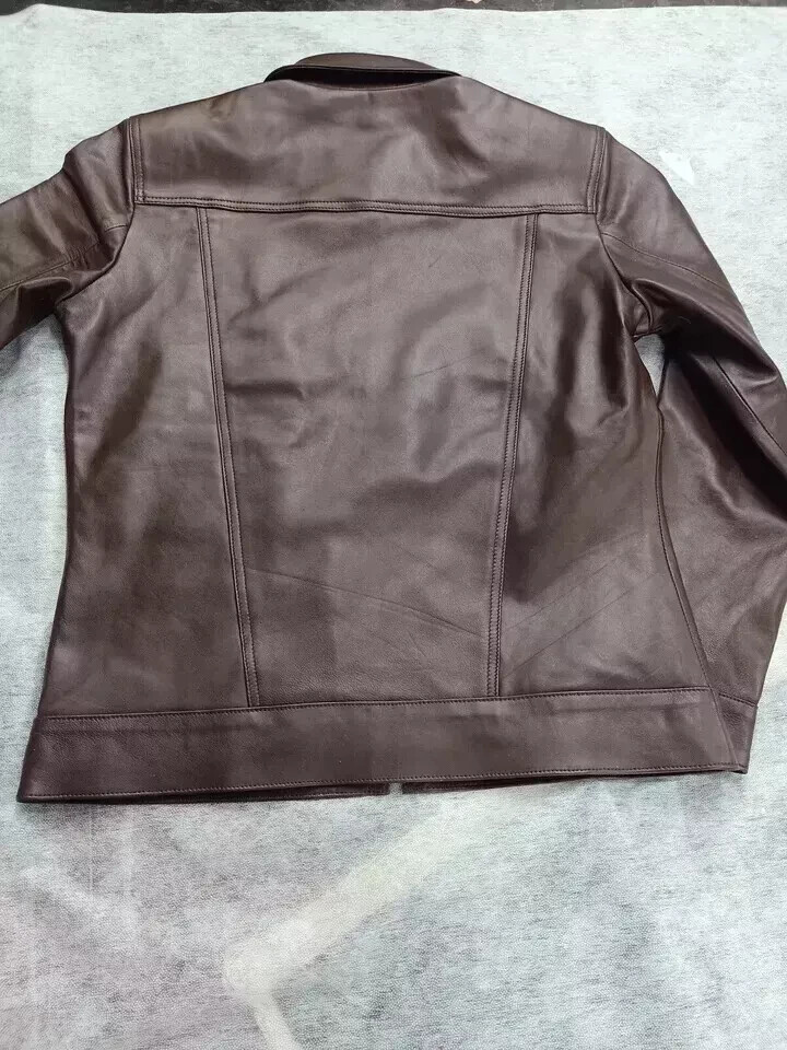 Stay trendy with this Celine Inspired Men Fashion Show Brown Leather Jacket by Hedi Slimane from the Paris runway. Made with high-quality leather and a stylish spread collar, this motorcycle jacket is perfect for both casual and formal occasions. Featuring a zip closure, polyester lining, and insulation, this mid-length jacket is designed for all seasons and will keep you looking sharp in any weather. Available in sizes XS to 4XL, this Easy Rider jacket is a must-have for fashion-forward men.