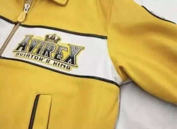 Mens Avirex Aviator King 75 Bomber Jacket 1975 Fashion Yellow Leather Jacket