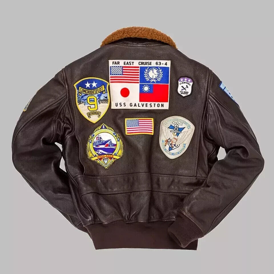 Men’s Maverick Top Gun Aviator Pilot Leather Bomber Jacket With Embroidery Patch