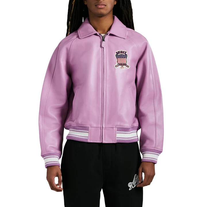 NEW Men’s Avirex Purple Icon Bomber Leather Jacket