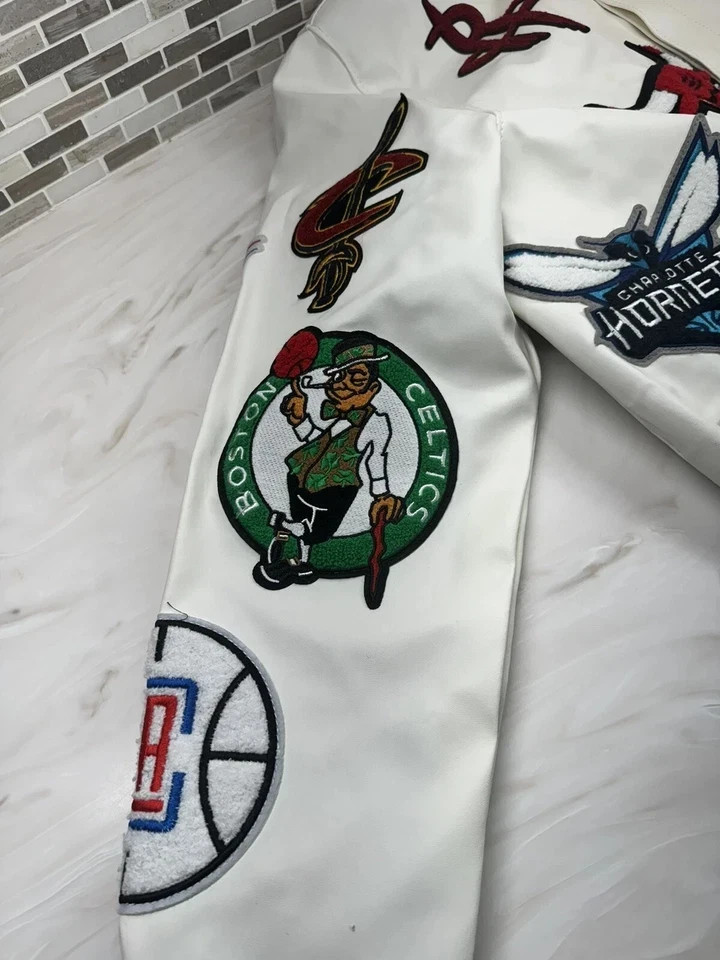 This NEW Men’s Bomber Jacket is handmade from genuine cowhide leather, making it a stylish and durable outerwear choice. The jacket features a varsity style with a spread collar and mid-length cut, perfect for casual or travel occasions during the winter, fall, and spring seasons. With a solid white color and logo accents, this personalized jacket offers a comfortable regular fit for men in sizes XS to 7XL. Made in Pakistan, this midweight jacket with a polyester lining and insulation is designed for outdoor activities like riding and walking, embodying an Easy Rider theme.