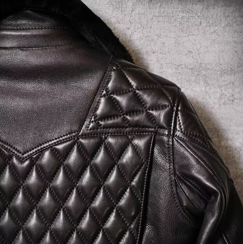 New Men’s Handmade Military Style Black Real Cowhide Leather Biker Jacket