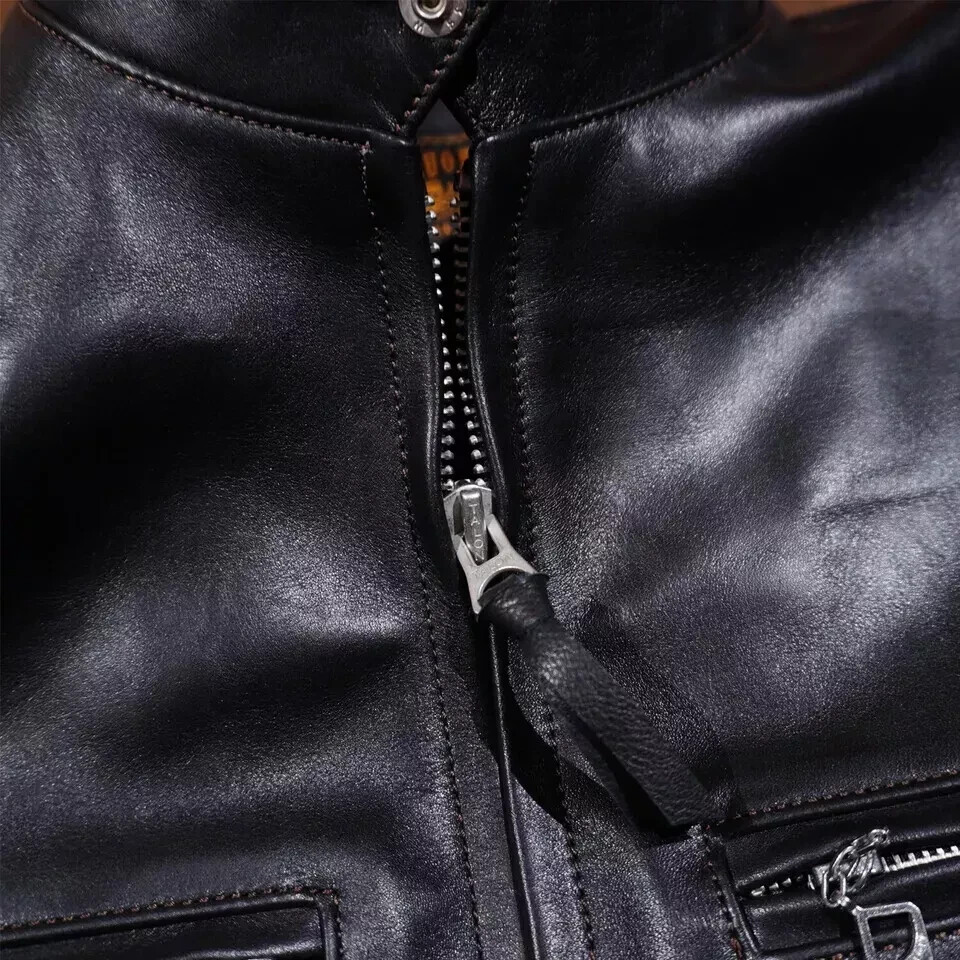NEW Men’s J100 Biker Jacket Italian Cowhide Stand Collar American Retro Jacket