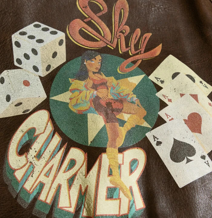 A2 flight jacket designed in 100% antique European lamb leather. Features Avirex logo at front, and suede and leather patch set on back.