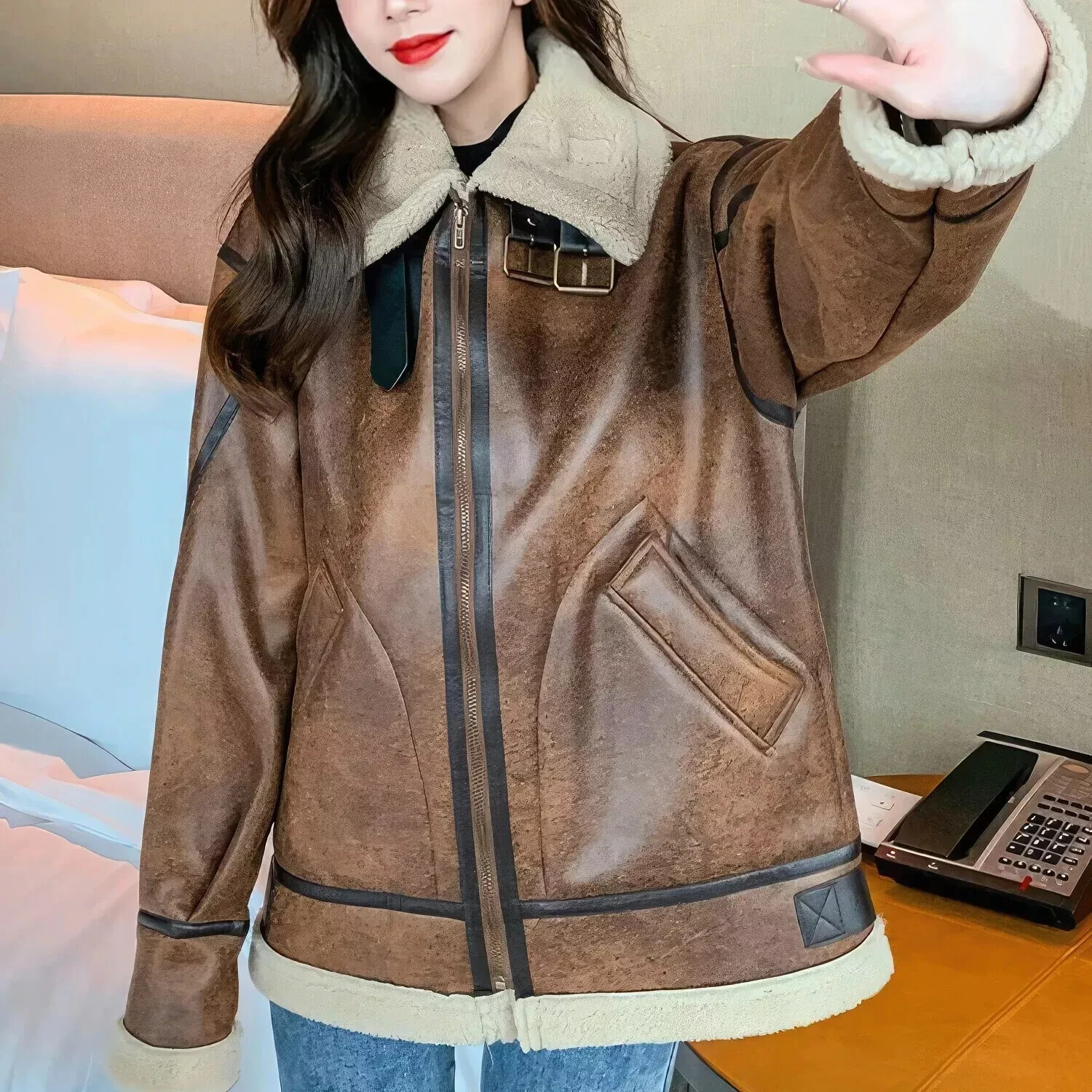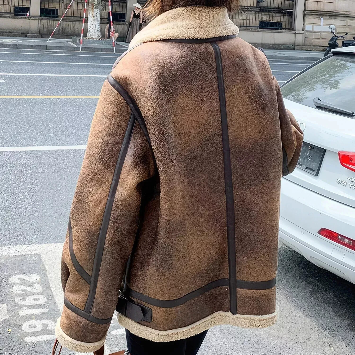 NEW Women’s Genuine Aviator Distressed Sherpa Shearling Sheepskin Leather Jacket